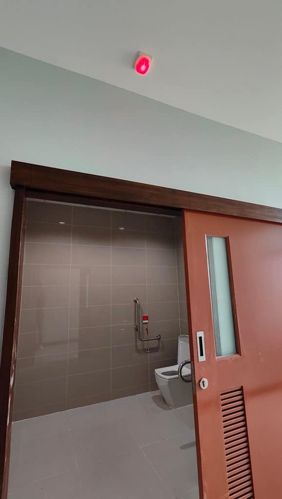 • ปุ่มเรียกฉุกเฉินในห้องน้ำและห้องน้ำผู้พิการ
