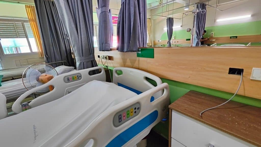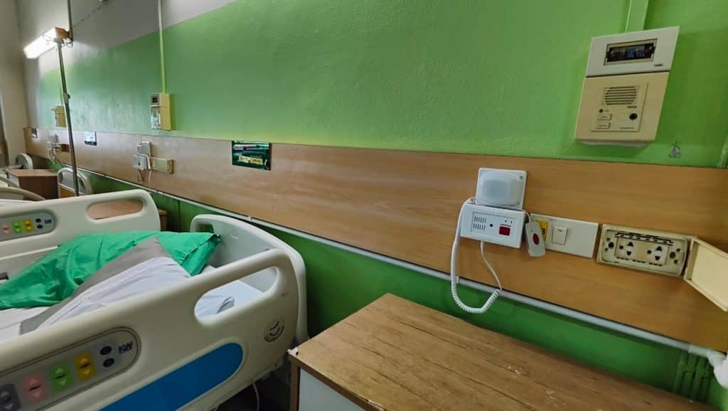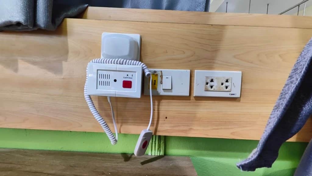 อุปกรณ์ที่ใช้ : เครื่องแม่หลัก และเครื่องเรียกพยาบาลพร้อมสายยืด ติดตั้งบริเวณหัวเตียง